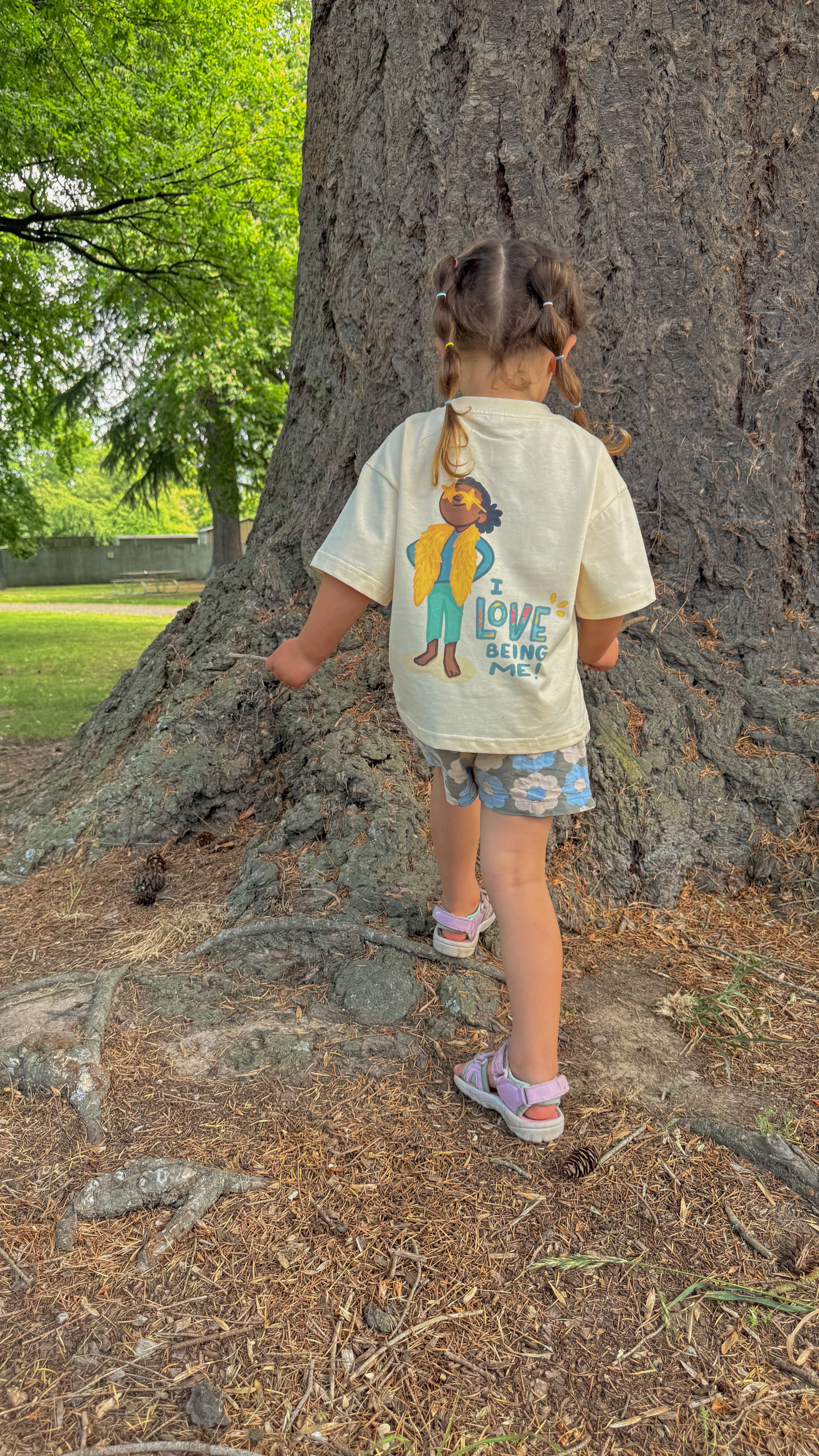The Love Being Me Tee is all about celebrating exactly who they are, silly faces, big feelings, curious questions and all.